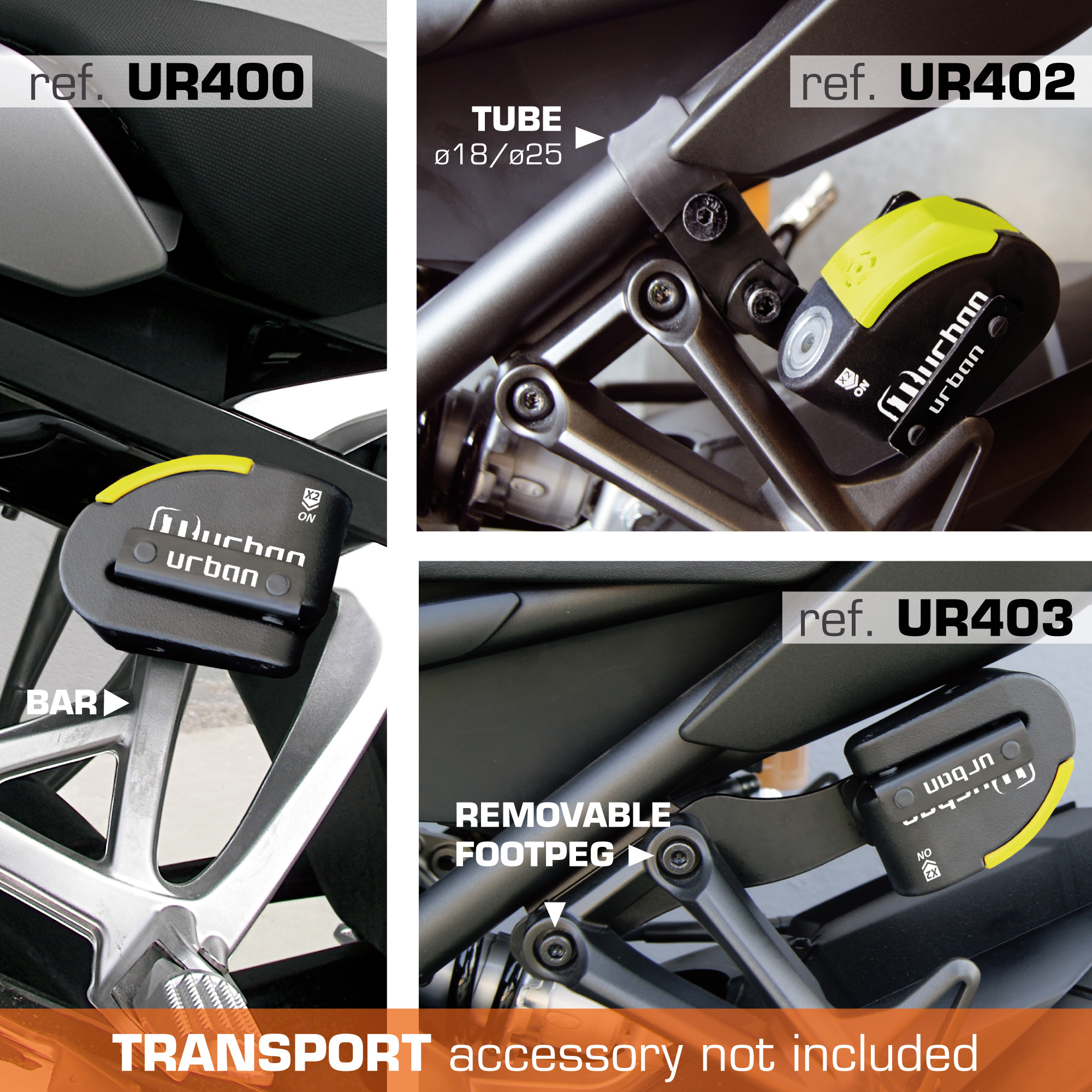 Soportes disponibles para un cómodo transporte (UR400, UR402 y UR403).