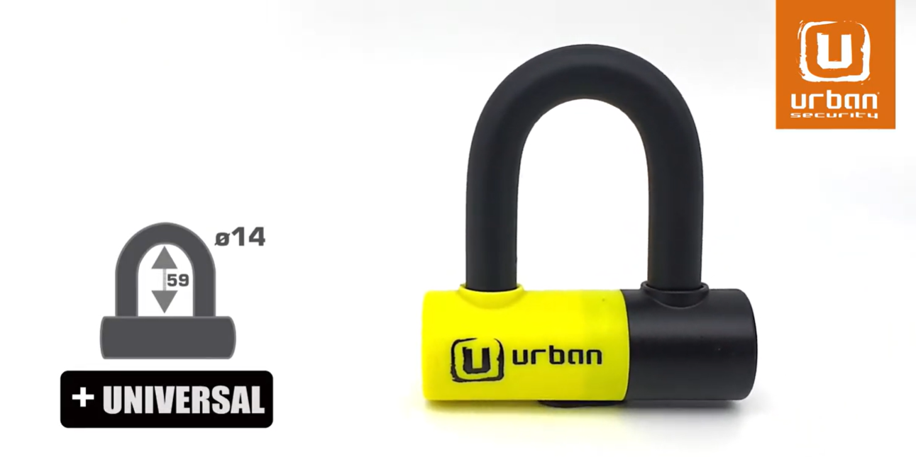 La mini U URBAN UR59 tiene unas dimensiones totalmente universales. Lo puedes cerrar en el disco de freno delantero, alrededor de la cadena de la rueda trasera o incluso combinarlo con cadena y anclarlo a un elemento externo.