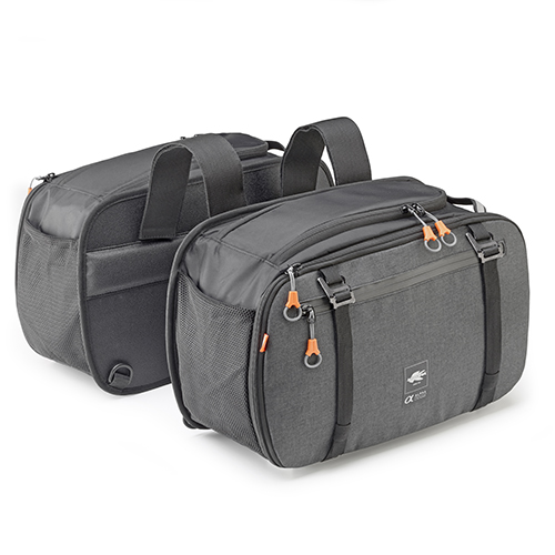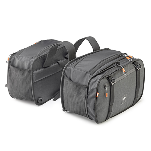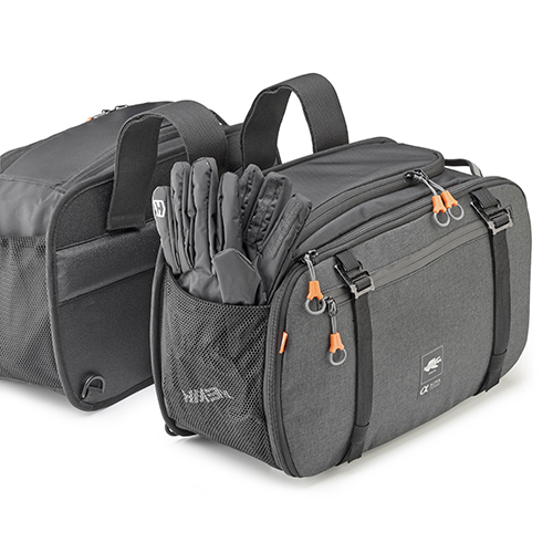 Kit de fijación: banda con cierre auto-adherente rápido regulable y 2 elásticos para el anclaje a la moto.