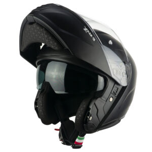 C-MAX es el nuevo modular CGM dedicado a aquellos que eligen experimentar nuevas emociones todos los días. Estilo y funcionalidad se combinan para ofrecerte comodidad y prestaciones de vanguardia en todas las condiciones, desde el habitual recorrido urbano hasta los caminos más aventureros, la doble homologación P/J te permite viajar con el casco modular en configuración cerrada o abierta. Equipada con pantalla con tratamiento antiarañazos, basculante, con bloqueo en posición cerrada y perfil superior aerodinámico, preparada para Pinlock 70 y pantalla parasol retráctil interna. Con ventilación Air Stream System de tres zonas y canalización interna. Forro hexagonal termoformado desmontable para un mayor confort de ajuste, de tejido ExtraCool con bandas reflectantes para aumentar la seguridad pasiva y con posibilidad de intercomunicador, el acolchado interno está realizado con un alojamiento especial para las patillas de las gafas. El equipo se completa con un deflector nasal, un deflector de barbilla y el tope de correa elástico.