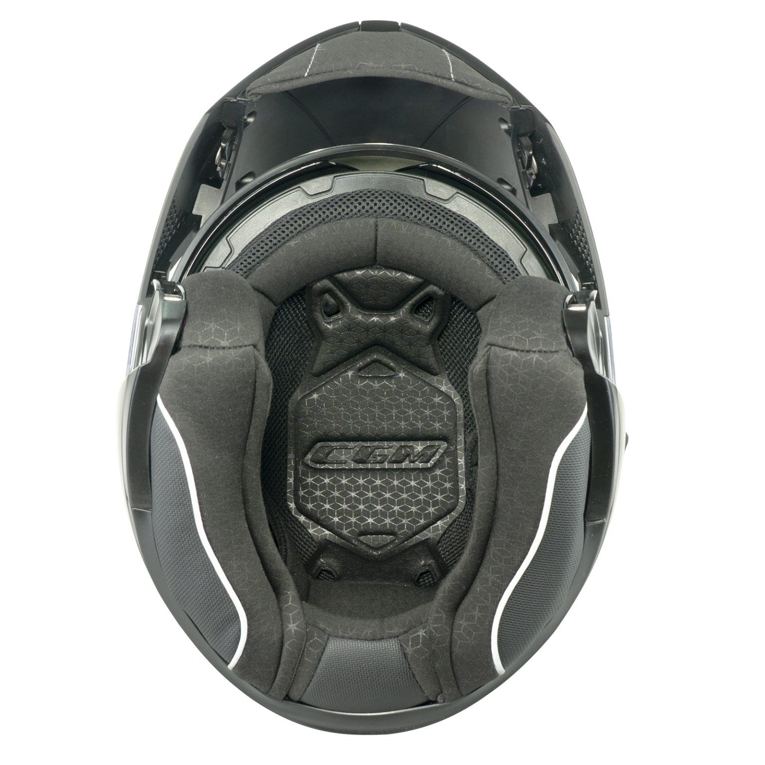 C-MAX es el nuevo modular CGM dedicado a aquellos que eligen experimentar nuevas emociones todos los días. Estilo y funcionalidad se combinan para ofrecerte comodidad y prestaciones de vanguardia en todas las condiciones, desde el habitual recorrido urbano hasta los caminos más aventureros, la doble homologación P/J te permite viajar con el casco modular en configuración cerrada o abierta. Equipada con pantalla con tratamiento antiarañazos, basculante, con bloqueo en posición cerrada y perfil superior aerodinámico, preparada para Pinlock 70 y pantalla parasol retráctil interna. Con ventilación Air Stream System de tres zonas y canalización interna. Forro hexagonal termoformado desmontable para un mayor confort de ajuste, de tejido ExtraCool con bandas reflectantes para aumentar la seguridad pasiva y con posibilidad de intercomunicador, el acolchado interno está realizado con un alojamiento especial para las patillas de las gafas. El equipo se completa con un deflector nasal, un deflector de barbilla y el tope de correa elástico.