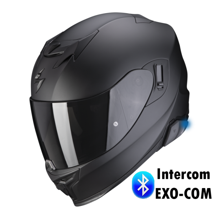 Casco Scorpion Exo-520 Smart Air. lo último de Scorpion en cascos integrales de gama media. Realizado en policarbonato, el Exo-520 Smart Air ha sido diseñado para proporcionar al motorista un excelente confort para uso diario y óptima eficiencia aerodinámica para unas buenas prestaciones en conducción deportiva de carretera. Dispone de pantallita solar ahumada oscura, acolchado interior Kwikwick2 (desmontable y lavable), sistema de ajuste Airfit de Scorpion, Inchable interior para ajustar mas, Pinlock Maxvision y mecanismo de pantalla Ellip-Tec II para una rápida sustitución. Dispone de un sistema de ventilación que permite una rápida evacuación del aire caliente y cierre micrométrico cómodo y práctico. El casco Scorpion Exo-520 Smart Air se suministra con el sistema de comunicación EXO-COM