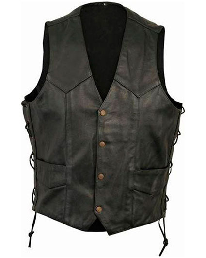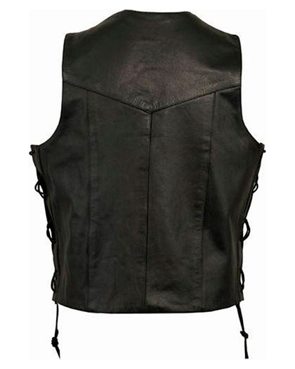 Chaleco de piel con cordones laterales para moto custom