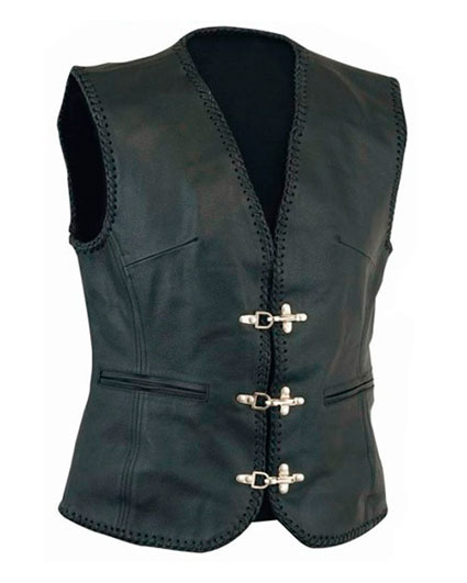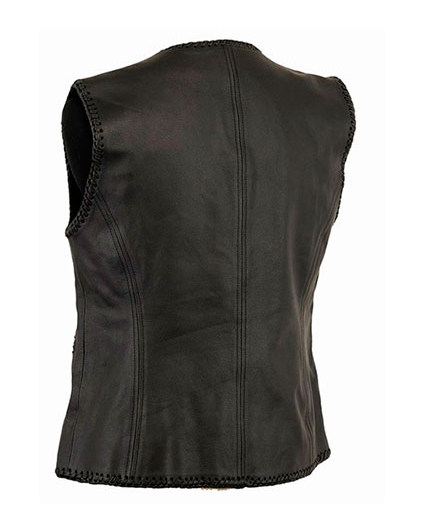 Chaleco femenino de piel de alta calidad con precioso trenzado confeccionado a mano.