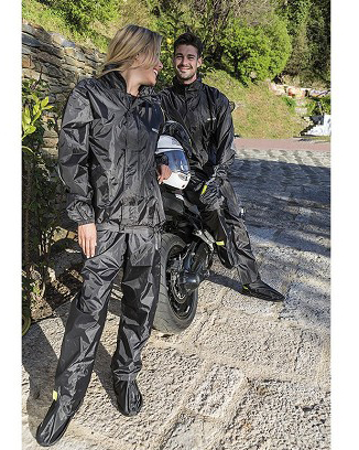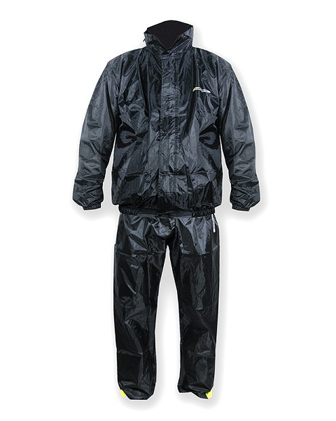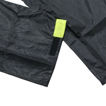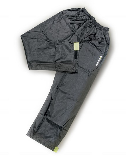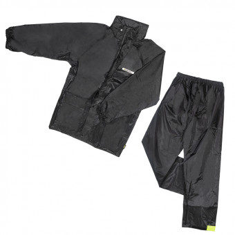 Cazadora impermeable ligera para los días lluviosos. Tejido exterior de Poliéster. Cierre frontal mediante cremallera con solapa de protección. Costuras termoselladas. Reflectante trasero en mangas y amarillo flúor de alta visibilidad en parte alta de la espalda. Capucha ergonómica extraíble del cuello. Ajuste elástico en puños y cintura. Pantalones impermeables ligeros para los días lluviosos. Tejido exterior de Poliéster. Tobilleras ajustables mediante velcro con inserción lateral amarillo flúor de alta visibilidad. Ajuste elástico en cintura. Cazadora y pantalones se entregan juntos en una pequeña funda de nylon para su fácil transporte. Color: negro Tallas: M a XXL