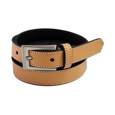 Cinturón de piel liso de color marrón claro con costuras en hilo blanco