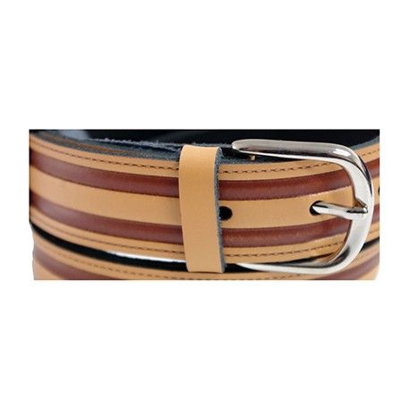 Cinturón de piel de color marrón con rayas e imitación de costuras
