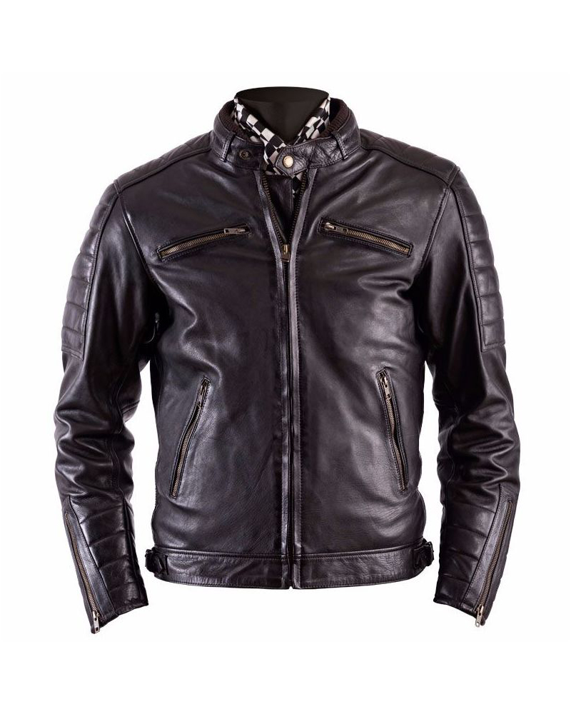 • Chaqueta para moto de piel vacuna (de 0,9 a 1,1 mm de grosor), ligera y con un aspecto arrugado.