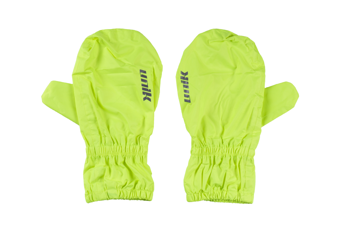 Cubreguantes impermeables para los días de lluvia. Tejido exterior de Poliéster. Ajuste elástico en puño y muñeca. Color amarillo flúor de alta visibilidad.