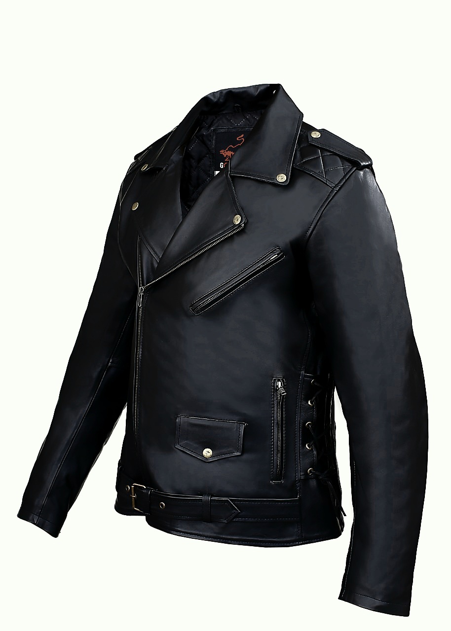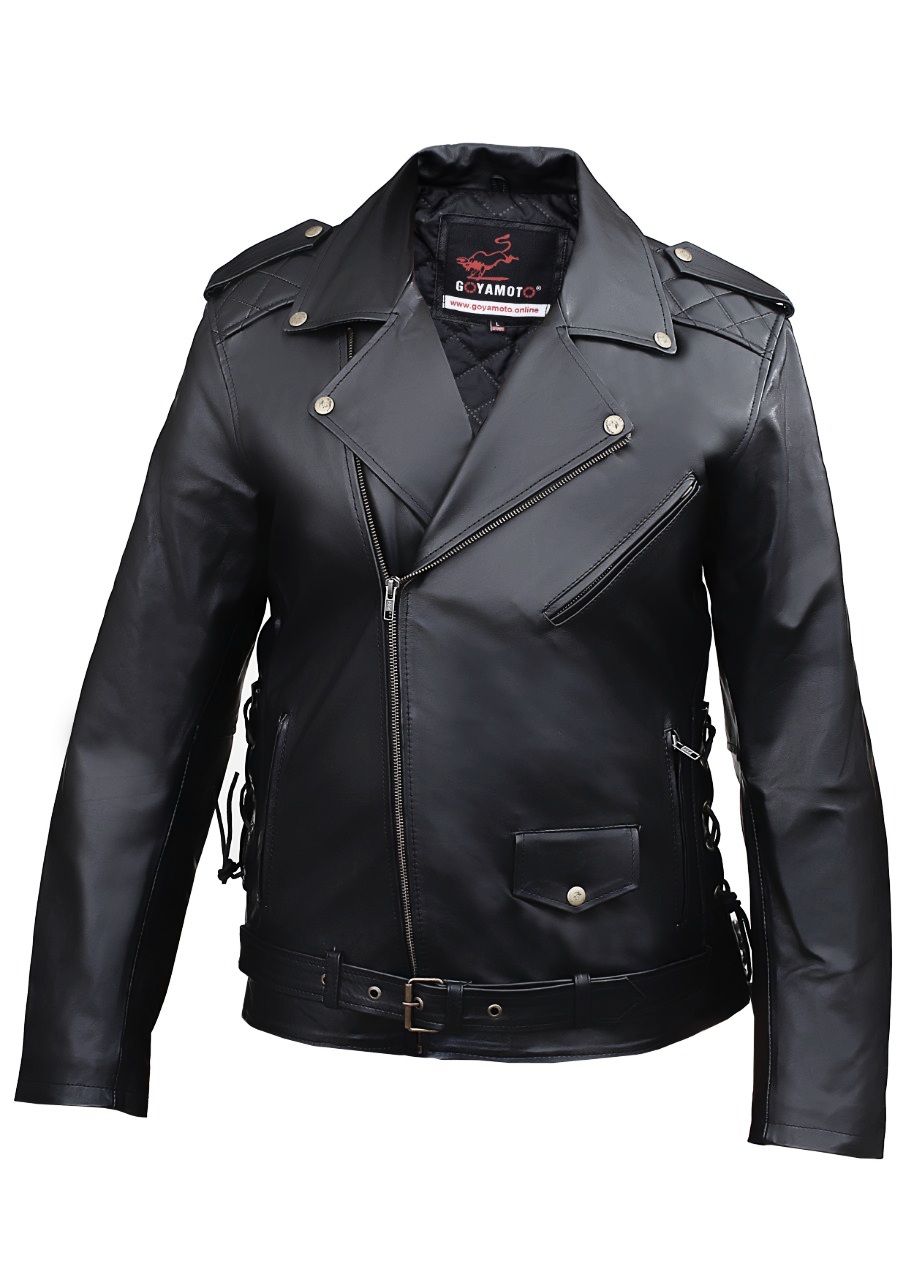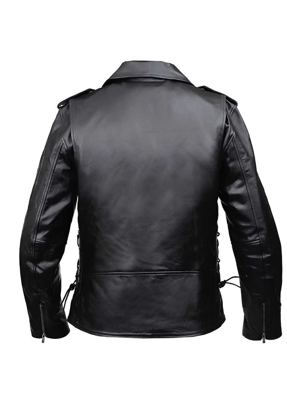 Chaqueta unisex de cuero cruzada para moto custom fabricada en piel de vacuno de maxima calidad.
