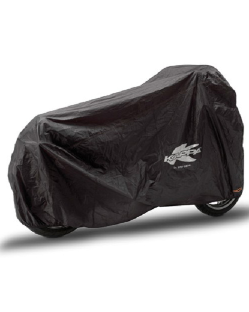 Funda exterior que protege la motos o scooter de las inclemencias meteorológicas. Fabricada en poliéster 210D, es 100% impermeable gracias a sus costuras termoselladas. Viene equipada con correas en la base para una correcta fijación a la moto y cuenta con un orificio específico para poder instalar un dispositivo antirrobo. Disponible en dos tamaños: • L para los scooters, nakeds y deportivas (longitud: 205 cm – altura: 125 cm – anchura: 90 cm) . • XL para maxi-scooters y motos con grandes parabrisas montados (longitud: 234 cm – altura: 125 cm – anchura: 90 cm)