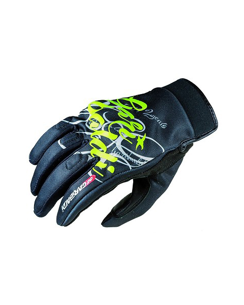 Guantes cortos para el entretiempo y el verano. Homologados, ofrecen protección gracias a las inserciones de PVC en nudillos y palma, que garantizan una óptima protección ante los impactos. Fabricados principalmente en ligero Poliester 560G en el dorso y Tongda Chamude en la palma. Acolchados EVA de Poliuretano en los dedos para una mayor resistencia. Dedos pre-curvados para una mayor comodidad de conducción. Dos refuerzos de piel de cabra Goat DD en la palma que incrementan la durabilidad y seguridad del guante en esta zona crítica así como acolchado EVA en la misma. Dorso completamente forrado en Poliester para un mejor confort de conducción. Palma sin forro interior que ofrece un contacto directo con la moto. Licra en los entre-dedos y Neopreno en el puño. Dedos perforados en la palma para una mayor aireación. Diseño en Silicona sobre el Poliester que recubre el protector de nudillos. Seguro y práctico cierre mediante velcro. Disponible también en versión femenina. Homologación CE 13594 : 2015. Color: Negro/Flúor Tallas: XS a XXL