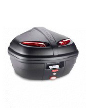 Maleta de 47 Lt. negra con base de aire rojo catadióptrico, incluye parrilla y kit.