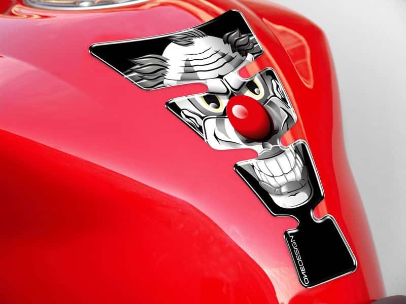 El protector de depósito modelo Clown de Puig no deja indiferente a nadie. Su original y llamativo diseño, disponible en color gris, verde o azul, está pensando para el motero que no quiere que ni él ni su moto pasen desapercibidos. Fabricados en material plástico de alta calidad, flexibilidad y resistencia, los protectores de depósito de Puig soportan un exigente control de calidad que garantiza una vida útil prolongada incluso bajo las condiciones de uso más duras.