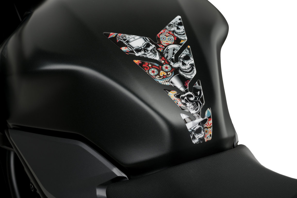 Renueva y potencia la imagen de tu moto, además de añadirle una protección adicional, con el protector de depósito Skull Party de Puig. Fabricado en material plástico de alta calidad, flexible y resistente, te permitirá aportarle a tu vehículo ese toque diferencial que buscas, mientras evitas arañazos e impactos en una zona sensible de la moto.