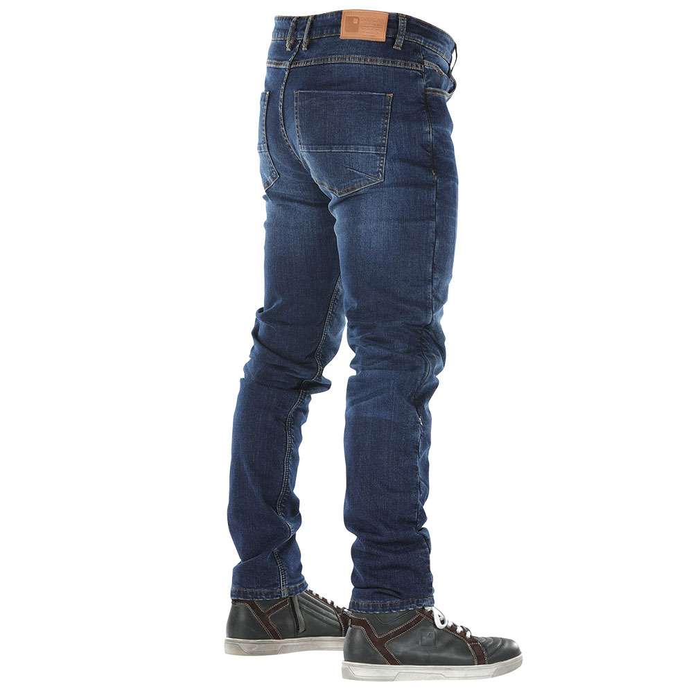 El vaquero Monza CE homologado para moto dispone de un corte ajustado y elástico. Ideal para los urbanitas en sus trayectos diarios. Los 2 bolsillos laterales con cremallera al nivel de las rodillas son prácticos para meter y quitar fácilmente las protecciones. Homologado CE y dispone de un forro reforzado en fibras de aramida/Coolmax y de protecciones para rodillas y caderas.